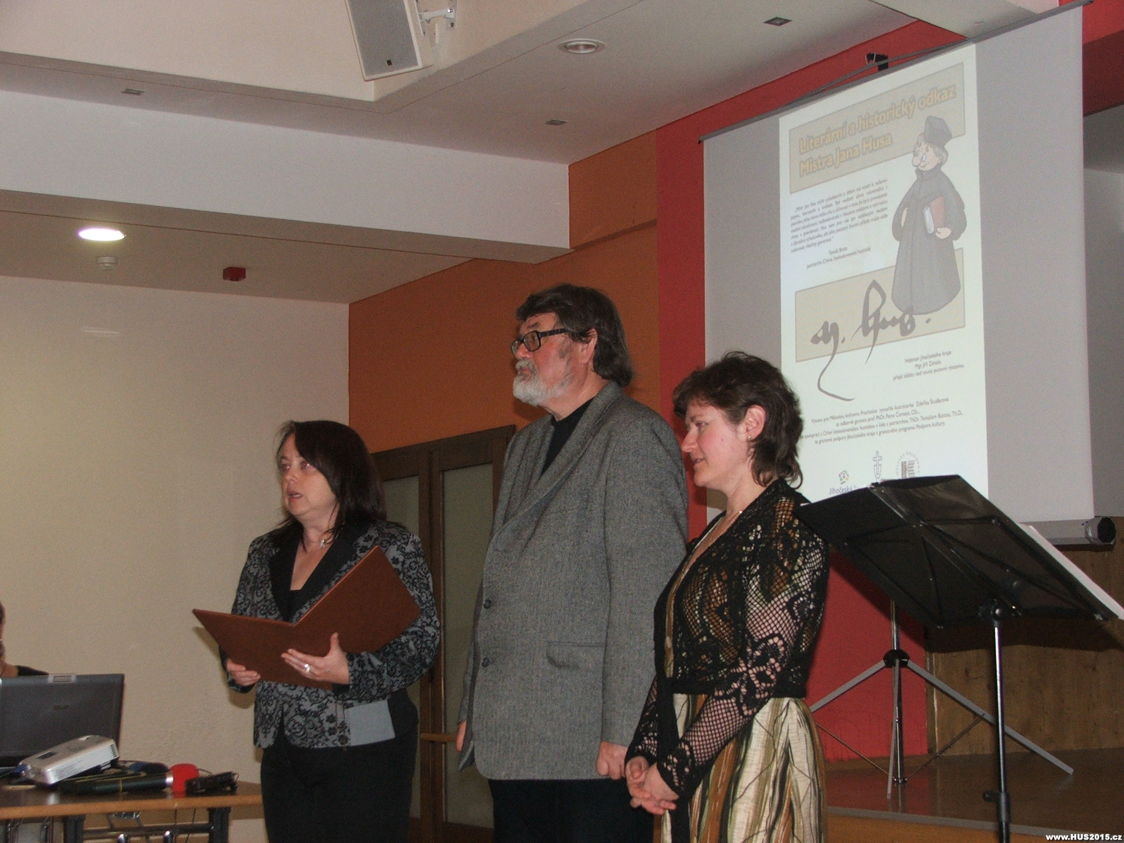 Paní ředitelka představuje prof. Petra Čorneje a ilustrátorku Zdeňku Študlarovou