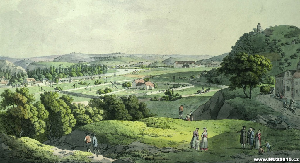 Vrch Vítkov a Špitálské pole u tehdejší Prahy, dějiště bitvy mezi husity a křižáckými vojsky dne 14. července 1420, zobrazil na samém počátku 19. století Lorenz Janscha. Archiv hlavního města Prahy, sbírka pražských vedut č. 238.