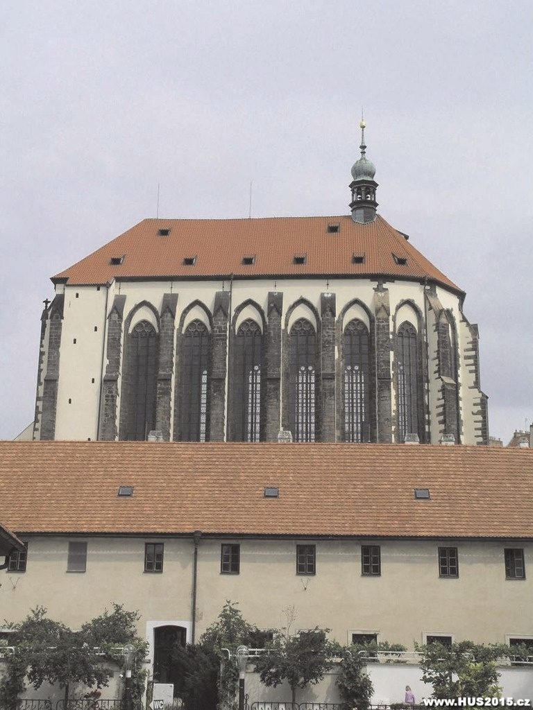 a červencem 1419 konat bohoslužby. Chrám dal postavit Karel IV. pro svou korunovaci. Stavba ale nikdy nebyla dokončena. Současná budova měla být "pouze" presbyteriem a loď chrámu by sahala daleko do dnešní Národní třídy. Výstava Husinec - archiv autorů.